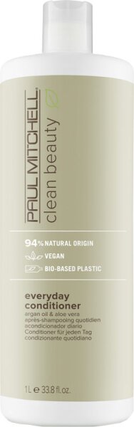 Einer für alles: Der Every Day Conditioner aus der Clean Beauty Pflegeserie von Paul Mitchell wurde eigens für die tägliche Haarpflege entwickelt. Er ist nicht nur für alle Haartypen und -längen geeignet sondern bietet Ihrem Haar zudem alle wichtigen Pflegeaspekte mit nur einem Produkt. Der Every Day Conditioner von Paul Mitchell enthält unter anderem wertvolles Arganöl sowie Aloe vera. Diese Inhaltsstoffe sorgen für mehr Geschmeidigkeit und Glanz und versorgen Ihre Haare zugleich mit Fettsäuren Vitamin E und wichtigen Antioxodantien. Dadurch fördert der Paul Mitchell Clean Beauty Conditioner die natürliche Elastizität und beruhigt außerdem die Kopfhaut. Die Rezeptur ist silikonfrei sodass Ihr Haar auch bei täglicher Anwendung des Produkts nicht beschwert wird. Vegane Haarpflege für Salon und zu HauseDer Every Day Conditioner aus der Clean Beauty Serie von Paul Mitchell ist zu 100 Prozent vegan und enthält darüber hinaus über 94 Prozent Inhaltsstoffe mit natürlichem Ursprung. Dies ermöglicht Ihnen eine bewusste sowie umwelt- und haarverträgliche tägliche Pflege. Geben Sie eine kleine Menge des Produkts in das feuchte Haar. Arbeiten Sie den Conditioner gründlich vom Ansatz bis in die Spitzen ein und lassen Sie ihn dann einige Minuten einwirken. Anschließend spülen Sie das Produkt gründlich aus.