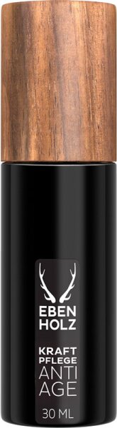 Die Ebenholz Kraftpflege Anti Age 30 ml ist eine natürliche Anti-Age Feuchtigkeits-Pflege mit 4-facher Kraftwirkung. Sie verbindet erstmals die konzentrierte Naturkraft der Eiche mit hocheffektivem Hyaluron. Durch die zusammenziehende Wirkung des Eichenrinden-Extraktes werden große Poren verkleinert und das gesamte Hautbild verfeinert. Zugleich schützt diese all-in-one Feuchtigkeitspflege vor Umweltbelastungen und regeneriert die Haut nachhaltig. Konzentriertes Quercetin wirkt durch sein extrem hohes antioxidatives Potenzial. Der auch in der Eiche vorkommende Wirkstoff schützt die Haut vor freien Radikalen und blockt schädliche Umwelteinflüsse ab.Hyaluron speichert zusätzlich Feuchtigkeit schützt die Haut vor dem Austrocknen und hält sie von innen glatt und geschmeidig.Die Flasche aus Schwarzglas mit Echtholzkappe ist "stilvoll nachhaltig" behandelt nur mit Feuer. Ebenholz ist kontrolliert vegan hypoallergen mit Bestwerten auf Hautverträglichkeit getestet ohne Tierversuche parabenfrei PEG-frei und frei von synthetischen Farben.Vorteile- natürliche Anti-Age Feuchtigkeits-Pflege- verfeinert das Hautbild verkleinert Poren- hält die Haut von innen glatt und geschmeidig- schützt vor Umweltbelastungen regeneriert die HautWirkstoffeHyaluron QuercetinAnwendungNach der Reinigung etwa vier bis sechs Pumpstöße Kraftpflege Anti Age auf die gereinigte abgetupfte Haut auftragen.Inhalt: 30 ml Anwendung: Ganz allgemein ist die Haut des Mannes einer Vielzahl von freien Radikalen und potenziell Alterungsprozess-fördernden Einflüssen ausgesetzt: Hautzellen werden geschädigt die Hautbarriere wird geschwächt die Haut sichtbar "müder". Hier setzt die innovative Kraftpflege Anti Age an - nachweisbar wirksam. Nach der Reinigung etwa 4-6 Pumpstöße auf die gereinigte abgetupfte Haut auftragen. Sie werden sofort die wohltuende Wirkung spüren.