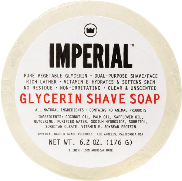 Die Imperial Glycerin Shave Face Soap 176 g ist eine Seife. Diese Seife ist 100% natü rlich und sowohl zum Rasieren als auch zur sanften Reinigung des Gesichts geeignet.Vorteile- Seife- sanft zur Haut- 100 % natü rlich- fü r Rasur und GesichtsreinigungInhalt: 176 g Anwendung: Die verbindliche Angabe der Anwendung entnimmst du bitte der Verpackung bzw. der beiliegenden Bedienungsanleitung des gelieferten Produktes.