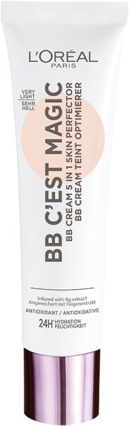 Adieu lange Beauty-Routinen am Morgen! Die BB Creme C&rsquo est Magic von L&rsquo Oré al Paris kaschiert Unebenheiten und spendet bis zu 24H lang Feuchtigkeit. Gleichzeitig schenkt die Creme der Haut ein gesundes Strahlen. Die Formel verschmilzt direkt beim Auftragen mit der Haut und passt sich dem Hautton an - fü r einen perfekten Nude-Effekt ohne Make-up-Rä nder. Zusä tzlich wird die Haut mit LSF 20 vor Sonneneinstrahlung geschü tzt. Dank der samtig-leichten Textur hä lt die Creme den ganzen Tag lang und hinterlä sst ein angenehm leichtes Tragegefü hl. Die BB Creme ist in mehreren Nuancen - von sehr hell bis dunkel - erhä ltlich und verfü gt ü ber eine leichte bis mittlere Deckkraft. Anwendung: Den Magic BB Teint Optimierer mit den Fingerspitzen einem Pinsel oder einem Make-up-Schwä mmchen gleichmä ß ig einmassieren.