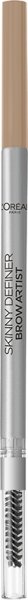 Ultra-prä ziser Augenbrauenstift fü r natü rlich wirkende Brauen - Der Brow Artist Skinny Definer von L'Oré al Paris ist ein ultra-prä ziser Augenbrauenstift der im Handumdrehen natü rlich wirkende Brauen zaubert. Mit der ovalen extra feinen Spitze auf der einen Seite kö nnen die Augenbrauen optisch Haar fü r Haar aufgefü llt und die Brauen definiert werden. Mit der raffinierten Spiralbü rste auf der anderen Seite kö nnen die feinen Hä rchen anschließ end in Form gebü rstet werden. Die cremige Formel lä sst sich ultra-leicht auftragen und verblenden. Dank der praktischen Stiftform mit herausdrehbarer Mine ist kein Anspitzen mehr nö tig. Somit ist der Augenbrauenstift jederzeit sofort einsatzbereit und ermö glicht einen mü helosen spielend einfachen Auftrag. Anwendung: Fü r hellere dezente Striche den Augenbrauenstift sanft und mit wenig Druck auftragen. Fü r dunklere Linien mehr Druck ausü ben und mehrere feine Striche ziehen. Zum Schluss mit der integrierten Bü rste die Brauenhä rchen in Form legen.