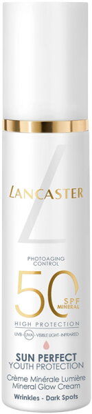 Die neue Sun Perfect Mineral Glow Cream SPF50 von Lancaster die die sichtbaren Zeichen lichtbedingter Alterung umkehrt bietet unseren umfassendsten fü r empfindliche oder leicht reizbare Haut geeigneten Sonnenschutz mit 100 % mineralischen Filtern. Diese rosige Mineralcreme fü r jeden Tag mit straffender Wirkung von Lancaster der Nr. 1 Prestige-Sonnenpflegemarke in Europa fö rdert eine ebenmä ß ige perfektionierte jü nger aussehende Haut. Die Einwirkung von Sonnenlicht ist fü r 80 % der sichtbaren Alterungsanzeichen2 verantwortlich ein Prozess der als lichtbedingte Hautalterung bekannt ist. Da UVA- und UVB-Strahlen nur 10 % des Sonnenspektrums ausmachen geht unsere Formulierung ü ber herkö mmlichen Sonnenschutz hinaus und schü tzt vor sichtbaren Licht- und Infrarotstrahlen. Unsere Full-Light Technologie&trade bietet einen 10-mal umfassenderen Sonnenschutz*.1 Insgesamt 5 europä ische (FR DE UK IT & ES) Prestigemä rkte & -marken. In Wert & Einheiten 2017 bis Juni 2024. Circana Group L.P BeautyTrends® .2 Die Weltgesundheitsorganisation & Yale Medicine Studie zu lichtbedingter Hautalterung. Anwendung: Als letzten Schritt der tä glichen Hautpflegeroutine auftragen. Vor dem Aufenthalt in der Sonne morgens groß zü gig auf das gesamte Gesicht und die Halspartie auftragen.Anwendung hä ufig wiederholen um den Schutz aufrechtzuerhalten*.*Darü ber hinaus gilt: Kein Sonnenschutzprodukt kann einen vollstä ndigen Schutz vor Sonnenstrahlen bieten. Ü bermä ß ige Sonneneinwirkung ist eine ernsthafte Gesundheitsgefahr.