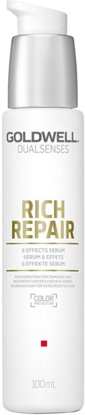 6 Effects Serum Anti-Haarbruch Effekt. Gibt seidige Geschmeidigkeit bietet sofortigen Glanz und gestärkte Haarstruktur.Rich Repair - Für trockenes bis geschädigtes Haarverbessert selbst stark geschädigte Haarstrukturen tiefenwirksamlässt den natürlichen Glanz des Haares erstrahlenDualsenses ProfessionalDank einer Kombination modernster Technologien erzielt Dualsenses Professionelle und sofort wirksame Lösungen.Der neue innovative microPROtec complex sorgt für die schnelle und gleichmäßige Verteilung essentieller Pflegewirkstoffe und bewirkt dadurch sofort sichtbare und spürbare Ergebnisse. Alle Dualsenses Produkte* enthalten den gleichen zuverlässigen Farbschutz zur Reduzierung von Farbverlust.So sanft wie reines Wasser: Die verbesserte FadeStopFormula ist in all unseren Dualsenses** Shampoos enthalten um zusätzlichen Farbverlust beim shampoonieren deutlich zu reduzieren.Luminescine - Die einzigartige Farbtechnologie beinhaltet Luminescine in allen vier Dualsenses Farbsegmenten Color Color Extra Rich Blondes & Highlights und Silver - die neue Generation von Farbleuchtkraft. Die neue Luminescine Technologie verwandelt unsichtbares UV-Licht in sichtbares Licht und erzeugt so überwältigende Farbleuchtkraft.*Ausgenommen Sensitiv Schaum Shampoo Anti-Haarausfall Spray und Serum sowie Kräftigendes Trockenshampoo.**Ausgenommen Scalp Specialist Shampoos.