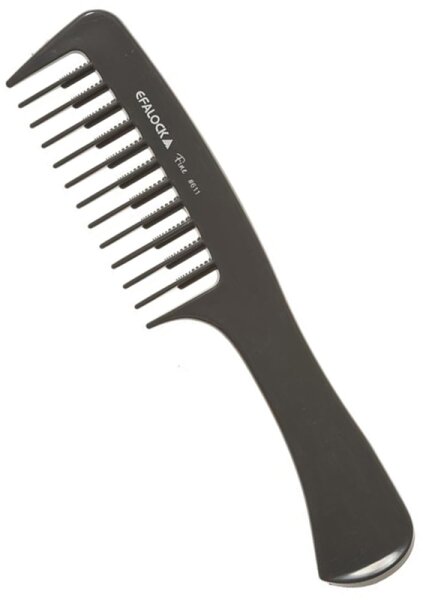Efalock Professional steht für Kämme und Bürsten die im Friseursalon zum Einsatz kommen und professionellen Ansprüchen genügen. Haare Bürsten & Kämme einzusetzen kann anspruchsvoll sein. Nasses Haar dauergewelltes Haar oder frisch gefärbtes Haar muss jeweils speziell behandelt werden. Der Fine Griffkamm #611 von Efalock Professional ist ein Profi-Kamm für den universellen Einsatz. Die Zinken sind zwar in feinen Abständen angeordnet sind aber doch so beschaffen dass der Kamm durch das Haar gleitet und sanft zur Kopfhaut ist. Diese Kämme sind für Perücken genauso geeignet wie für jede Frisur.Polyacetal-Kunststoff ist formstabil aber doch flexibelDer Fine Griffkamm #611 ist aus Polyacetal-Kunststoff gefertigt einem innovativen Material das leicht flexibel ist. Wer den Kamm in der Hand hält und sanft durch das Haar gleiten lässt wird es bemerken: Der Kamm gibt nach wenn Haare entwirrt werden. Alles sanft für die Haare: Bürsten & Kämme müssen beim Entwirren einen gewissen Widerstand aufbauen aber doch nachgeben. Sonst bricht das Haar. Der Wien Griffkamm #611 ist flexibel so dass das Haar nicht zu Schaden kommt. Mit einer Länge von 205 mm liegt der Kamm gut in der Hand. Beim Fönen und anderen Wärmebehandlungen bleibt er stabil Polyacetal-Kunststoff ist chemikalienresistent.