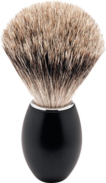 Der Erbe Shaving Shop Rasierpinsel schwarz matt ist ein hochwertiger Pinsel fü r eine perfekte Rasur. Der formschö ne mattschwarze Griff und die Borsten aus echtem Dachshaar machen diesen Pinsel zu einem besonderen Accessoire im Badezimmer fü r Liebhaber der klassischen Nassrasur. Mit seinem voluminö sen Borstenkopf ist er nicht nur optimal geeignet zum Aufschlagen von Rasierschaum sondern die echten Dachshaarborsten schmeicheln auch der Haut beim Auftrages des Schaumes auf die zu rasierenden Partien.Vorteile- hochwertiger Rasierpinsel- aus echtem Dachshaar- mit voluminö sen Borstenkopf- formschö ner mattschwarzer GriffInhalt: 1 Stk Anwendung: Rasierpinsel gut anfeuchten und in der Rasierschale einen feinporigen Schaum schlagen . Anschließ end die Haarspitzen vorsichtig in die Creme tupfen und mit kreisenden Bewegungen auf die Haut auftragen. Kinn Hals und Oberlippe besonders grü ndlich auf die Rasur vorbereiten. Nach der Anwendung den Pinsel sorgfä ltig ausspü len. Das Restwasser ausschlagen und einmal in ein Handtuch drü cken. Den Rasierpinsel dann mit den Haaren nach unten auf einem Halter trocknen lassen.
