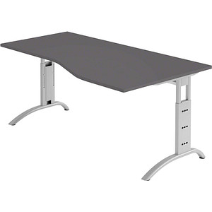 Der HAMMERBACHER FS18 höhenverstellbare Schreibtisch grafit Trapezform C-Fuß-Gestell silber 180 0 x 80 0 100 0 cm ist ideal für jedes Büro geeignetMit dem HAMMERBACHER FS18 höhenverstellbaren Schreibtisch grafit Trapezform C-Fuß-Gestell silber 180 0 x 80 0 100 0 cm erhalten Sie ein neues wertvolles Einrichtungsstück für Ihr Büro. Insbesondere wenn Sie viel Zeit an Ihrem Arbeitsplatz verbringen ist es wichtig dass dieser funktionell ist und zum Wohlfühlen beiträgt.Höhenverstellung möglichMit diesem neuen Arbeitsplatz erhalten Sie ein höhenverstellbares Modell. Hierbei können Sie zwischen einer Höhe von 65 0 - 85 0 cm wählen. Die Anpassung erfolgt manuell.Keine Chance dem KabelchaosAn einem Arbeitsplatz mit elektronischen Geräten gibt es immer auch eine Vielzahl an Anschlusskabeln. Damit Sie eine potenzielle Sturzgefahr vermeiden können und außerdem einen ordentlichen Arbeitsplatz haben bewältigt ein Kabelkanal horizontal mögliches Kabelchaos.Passt er in Ihr Büro?Der HAMMERBACHER FS18 höhenverstellbare Schreibtisch grafit Trapezform C-Fuß-Gestell silber 180 0 x 80 0 100 0 cm ist 44 4 kg schwer. Aus folgenden Maßen setzt er sich zusammen: 180 0 x 80 0 100 0 cm (BxT). Die maximale Belastbarkeit liegt bei 120 0 kg.Robustes Gestell aus StahlDie Tischplatte besteht aus Spanplatten und das Gestell aus Stahl. Somit ist das Modell robust und stabil. Dank der melaminharzbeschichteten Oberfläche der 2 5 cm dicken Tischplatte profitieren Sie von folgenden Vorteilen: PflegeleichtKratzfestFlüssigkeitsabweisendDie optischen MerkmaleDa es sich beim HAMMERBACHER FS18 höhenverstellbaren Schreibtisch grafit Trapezform C-Fuß-Gestell silber 180 0 x 80 0 100 0 cm um ein Möbelstück handelt stellt sich auch die Frage nach den optischen Merkmalen. Macht in nahezu jedem Raum eine gute Figur: das silberne C-Fuß-Gestell und die grafite Tischplatte. Dieses Modell ist also nicht nur funktional sondern auch optisch ein Volltreffer.Was ist besonders an diesem Modell?Das Modell bietet folgende besonderen Eigenschaften: Wendeplatte dadurch tiefe Seite links oder rechts montierbar.Ausgezeichnete Voraussetzungen des HAMMERBACHER FS18 höhenverstellbaren Schreibtischs grafit Trapezform C-Fuß-Gestell silber 180 0 x 80 0 100 0 cmÜber folgende Zertifizierung verfügt der HAMMERBACHER FS18 höhenverstellbare Schreibtisch grafit Trapezform C-Fuß-Gestell silber 180 0 x 80 0 100 0 cm: Das Produkt ist FSC®-zertifiziert. FSC® ist die Abkürzung für Forest Stewardship Coucil dies ist eine gemeinnützige Organisation die sich weltweit für die Förderung verantwortungsvoller Waldwirtschaft einsetzt. Sie hilft damit Wälder für zukünftige Generation zu bewahren. Das Holz für FSC-zertifizierte Produkte stammt aus Wäldern die umweltgerecht und verantwortungsvoll bewirtschaftet werden.Entspricht dieses Modell Ihren Anforderungen?Dann bestellen Sie den HAMMERBACHER FS18 höhenverstellbaren Schreibtisch grafit Trapezform C-Fuß-Gestell silber 180 0 x 80 0 100 0 cm hier bei uns online!