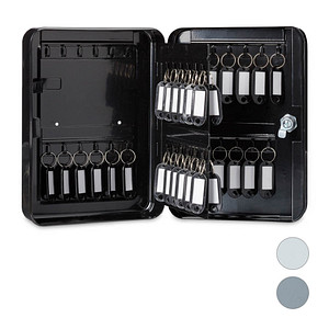 Für eine organisierte Schlüsselaufbewahrung – relaxdays Schlüsselkasten schwarz mit 48 Haken ZylinderschlossGestalten Sie mit dem relaxdays Schlüsselkasten schwarz mit 48 Haken Zylinderschloss eine zentrale Anlaufstelle für Ihre Schlüssel. Das bedeutet nie wieder Zeit durch eine aufwendige Schlüsselsuche verschwenden. Alle Schlüssel erhalten einen festen Platz und sind sofort griffbereit.Damit gehen Sie auf Nummer sicherDamit Ihre Schlüssel sicher verwahrt sind ist das Modell abschließbar. Verriegelt wird per Zylinderschloss. Wie viele Schlüssel finden hier Platz?Die Anzahl der Schlüssel die Sie aufhängen können beträgt 48 Stück.Näheres zur BeschaffenheitDas Material Metall aus dem der relaxdays Schlüsselkasten besteht hat eine lange Lebensdauer und eine besondere Stabilität. So haben Sie lange Freude an diesem Produkt. Die lackierte Oberfläche macht das Modell noch widerstandsfähiger und sorgt für eine angenehme Optik.Diese Details sind ebenfalls wichtigAus folgenden Werten setzen sich die wichtigsten Maße zusammen: Breite: 18 0 cmTiefe: 7 5 cmHöhe: 25 0 cmBeachten Sie auch die Öffnungsrichtung und stellen Sie sicher dass diese zu Ihrem Einsatzort passt – geöffnet wird nach rechts. Der Artikel hat ein Komplettgewicht von 1 3 kg.Haben Sie hier alle Vorteile die Sie sich vorstellen gefunden?Zur Lieferung erhalten Sie 2x Schlüssel 48x Schlüsselanhänger 48x Zahlensticker. So haben Sie ein praktisches Komplettpaket zur Verfügung. Wenn Sie den Artikel bestellen ist in der Lieferung Folgendes enthalten: 2 Schlüssel Montagematerial Schlüsselanhänger. Schnell und bequem können Sie den relaxdays Schlüsselkasten schwarz mit 48 Haken Zylinderschloss hier im Shop bestellen.